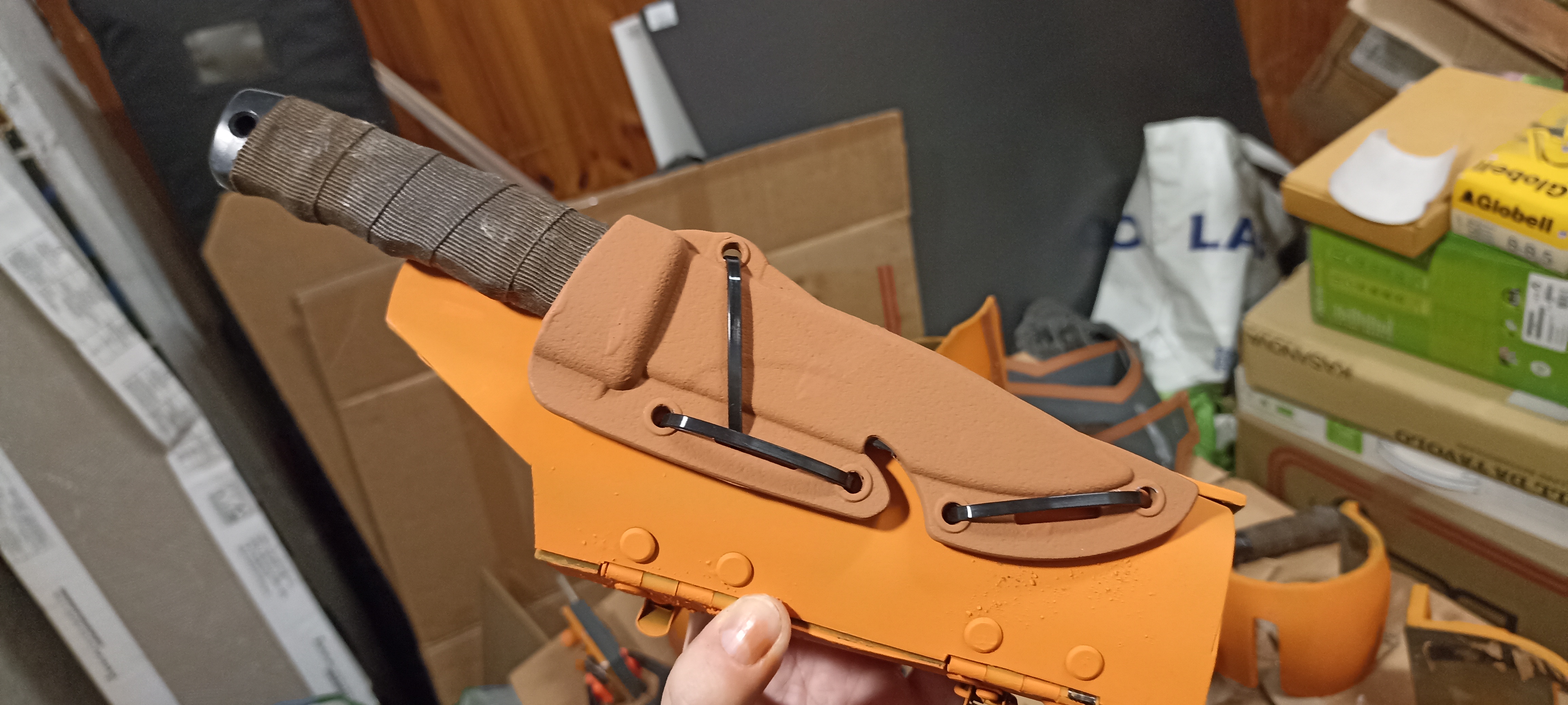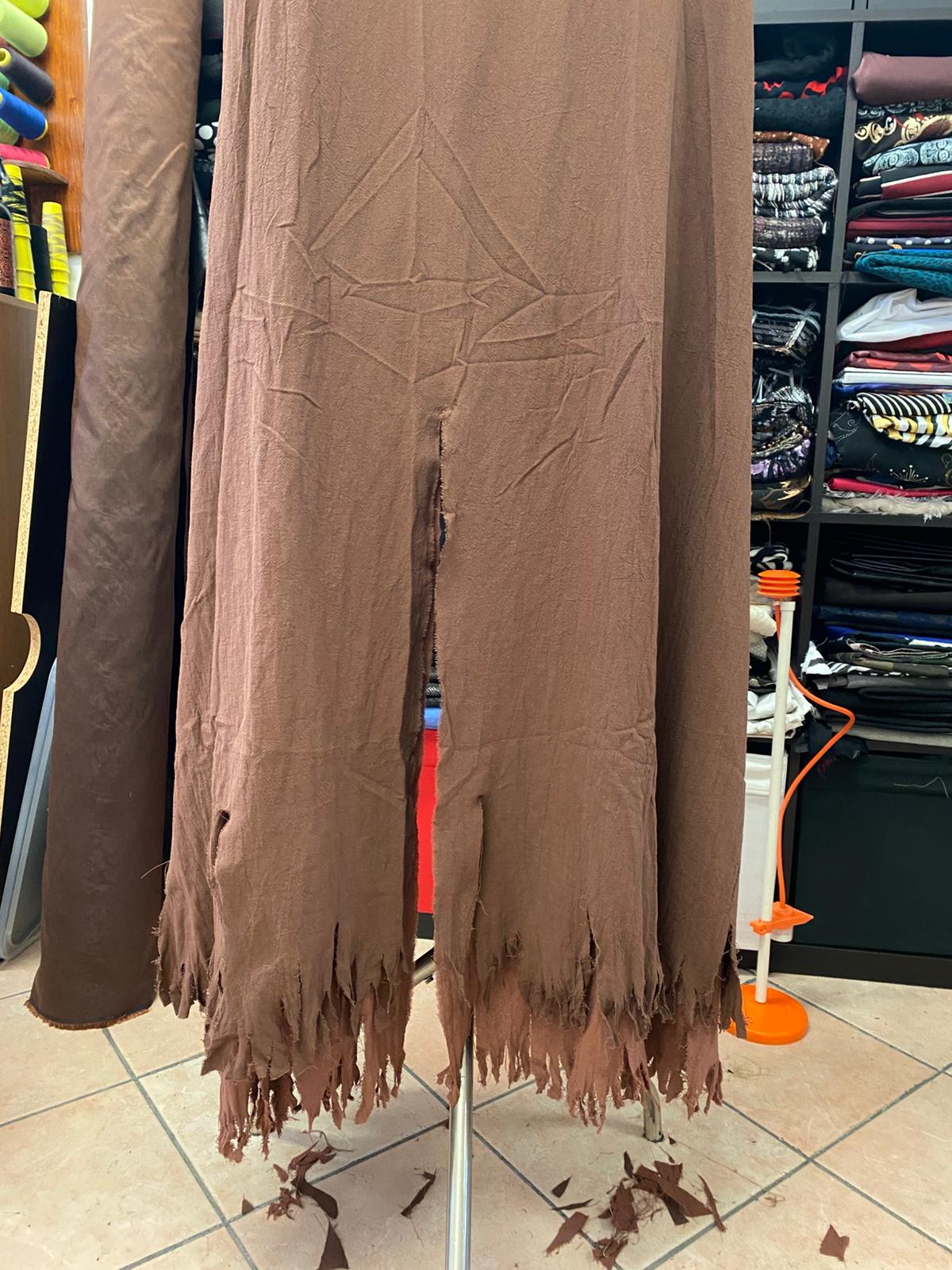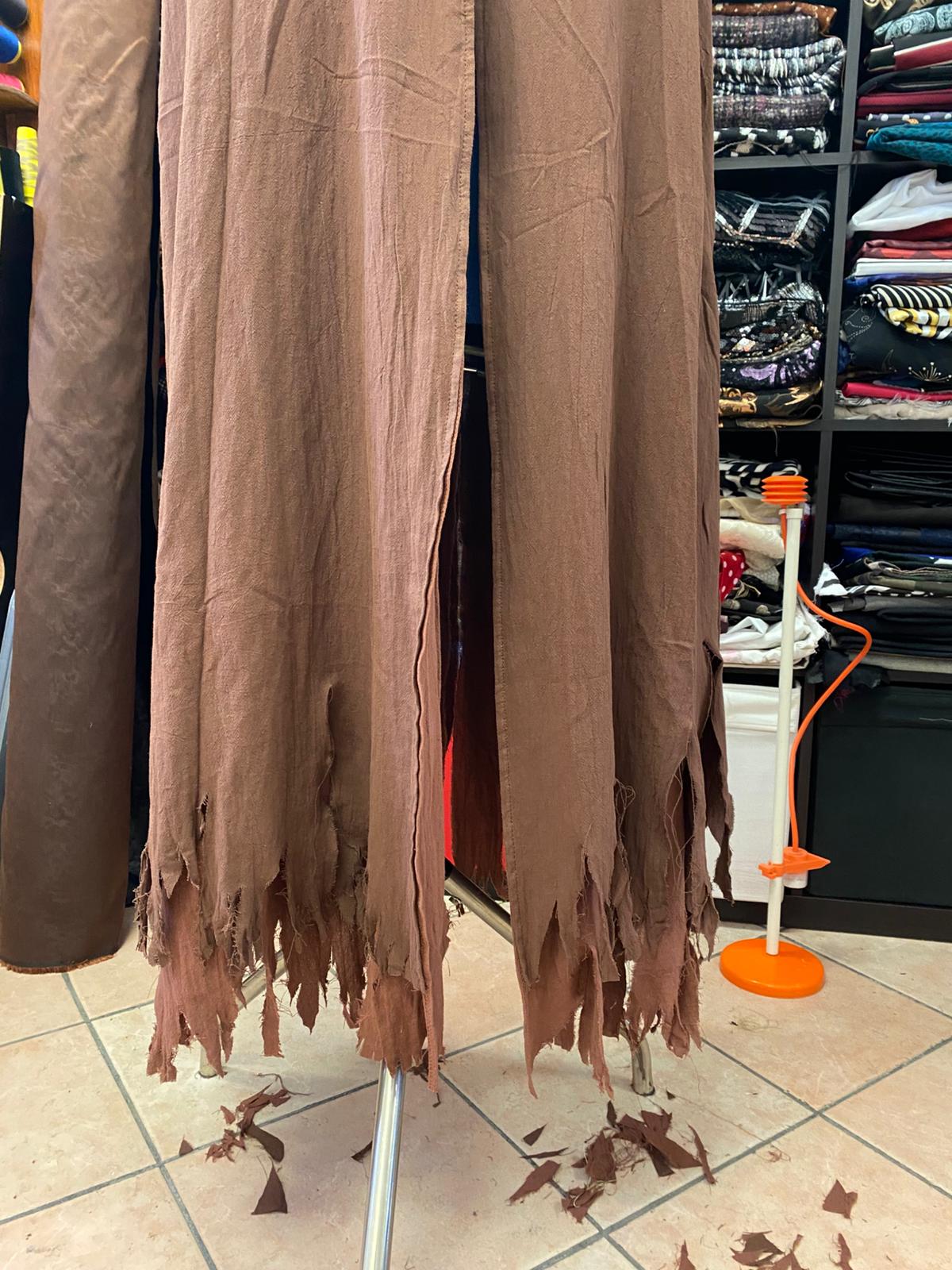 Drapes and bandages are in Juta and or Linen, same thing for the under belt. Forearm guards are totally hand made by me on my custom desin that i moved on a polistyrene pannel, cut, and with hot gun forged.
