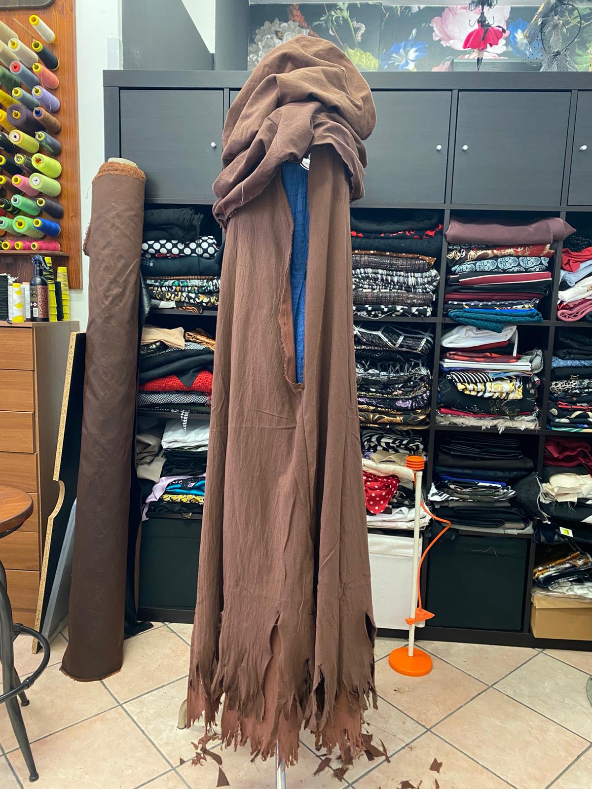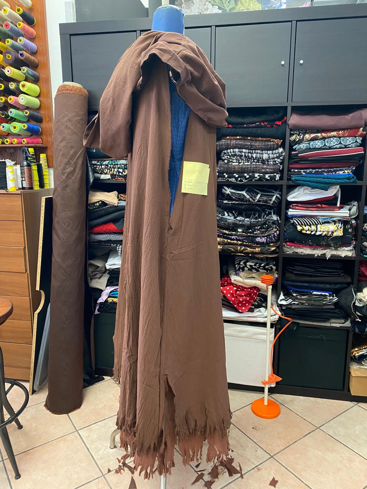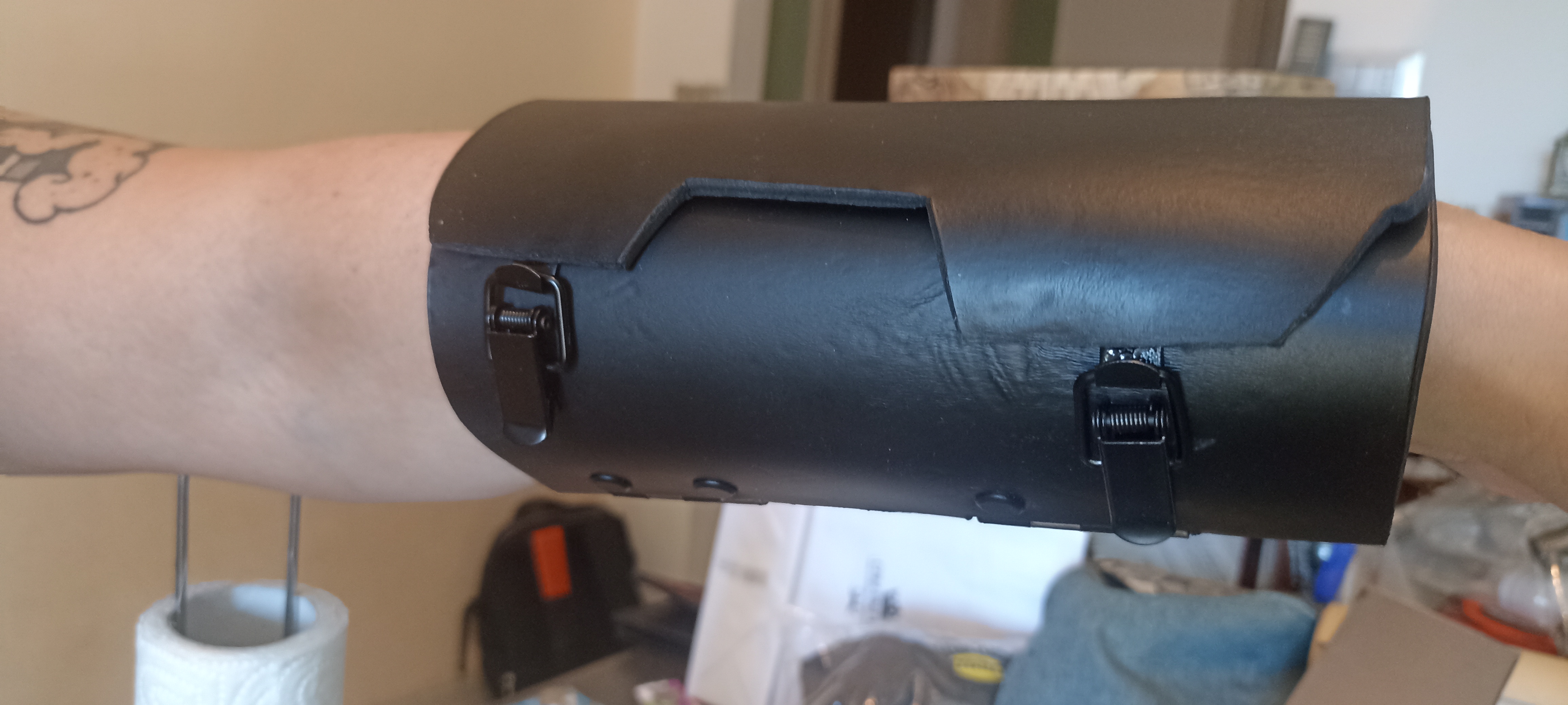 Drapes and bandages are in Juta and or Linen, same thing for the under belt. Forearm guards are totally hand made by me on my custom desin that i moved on a polistyrene pannel, cut, and with hot gun forged.