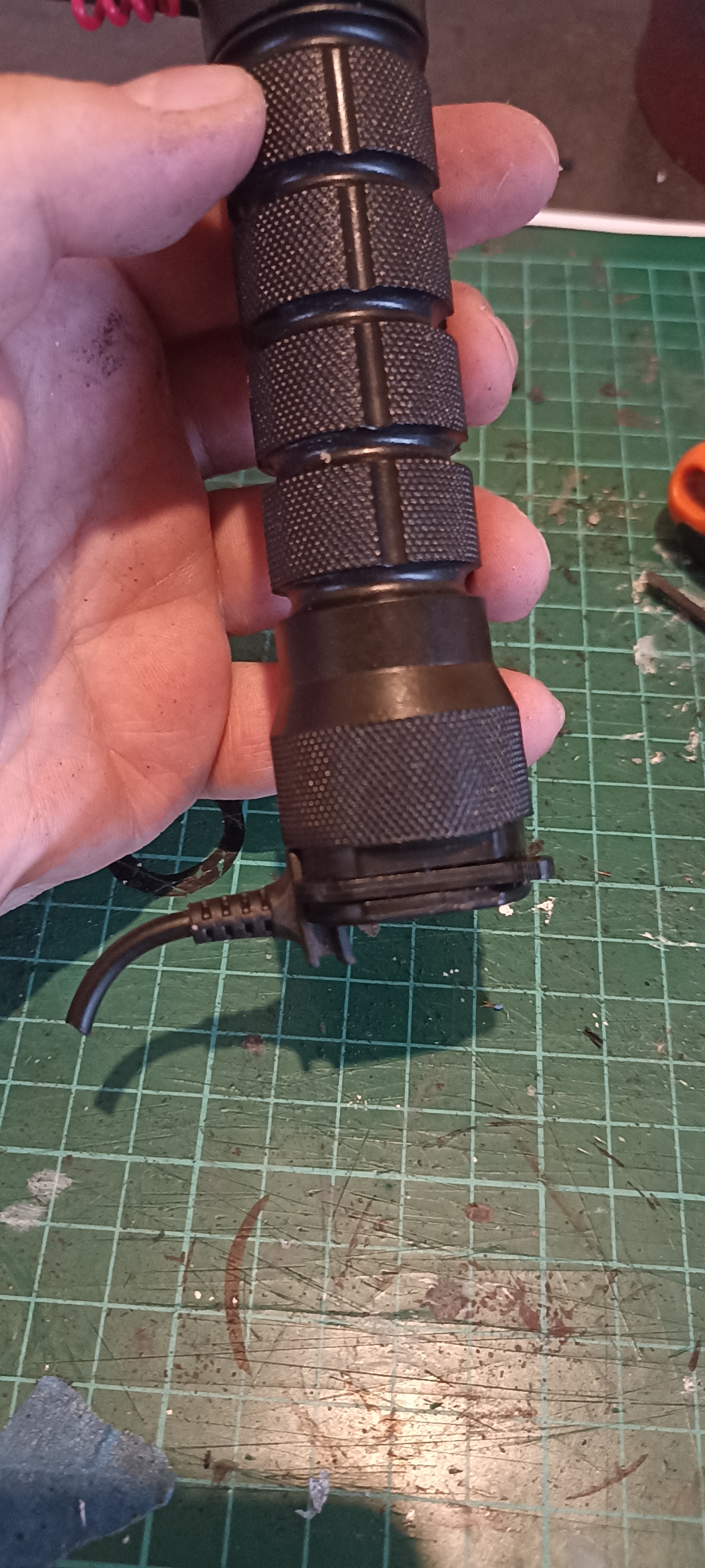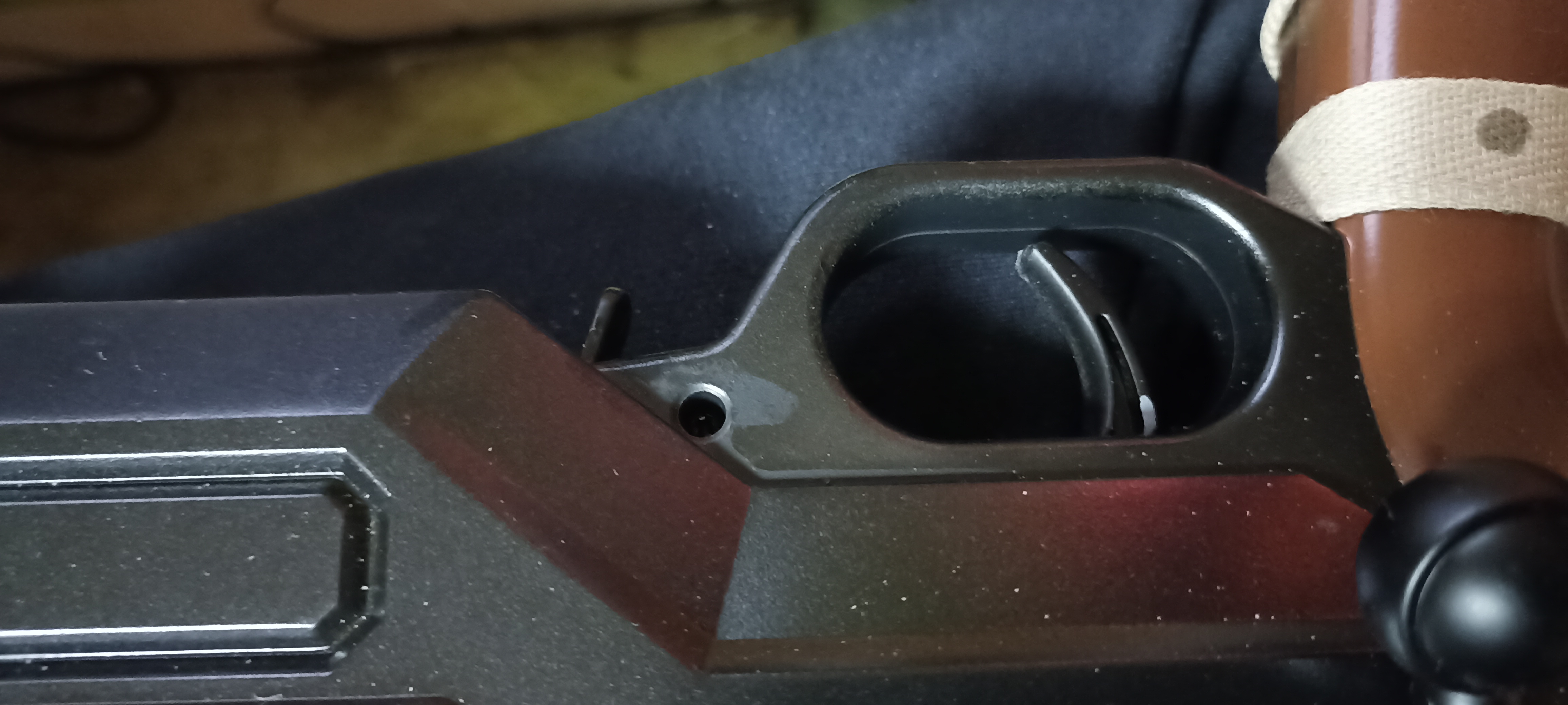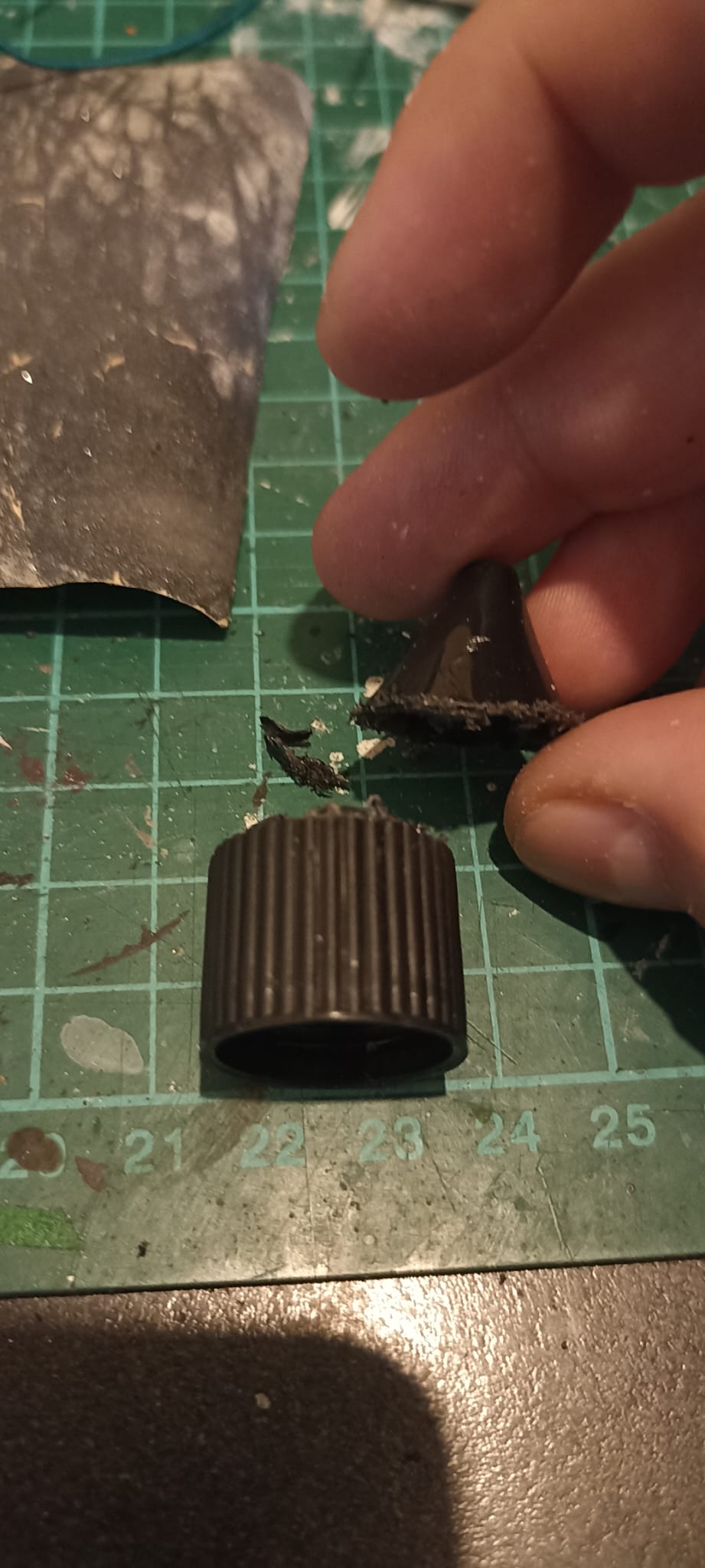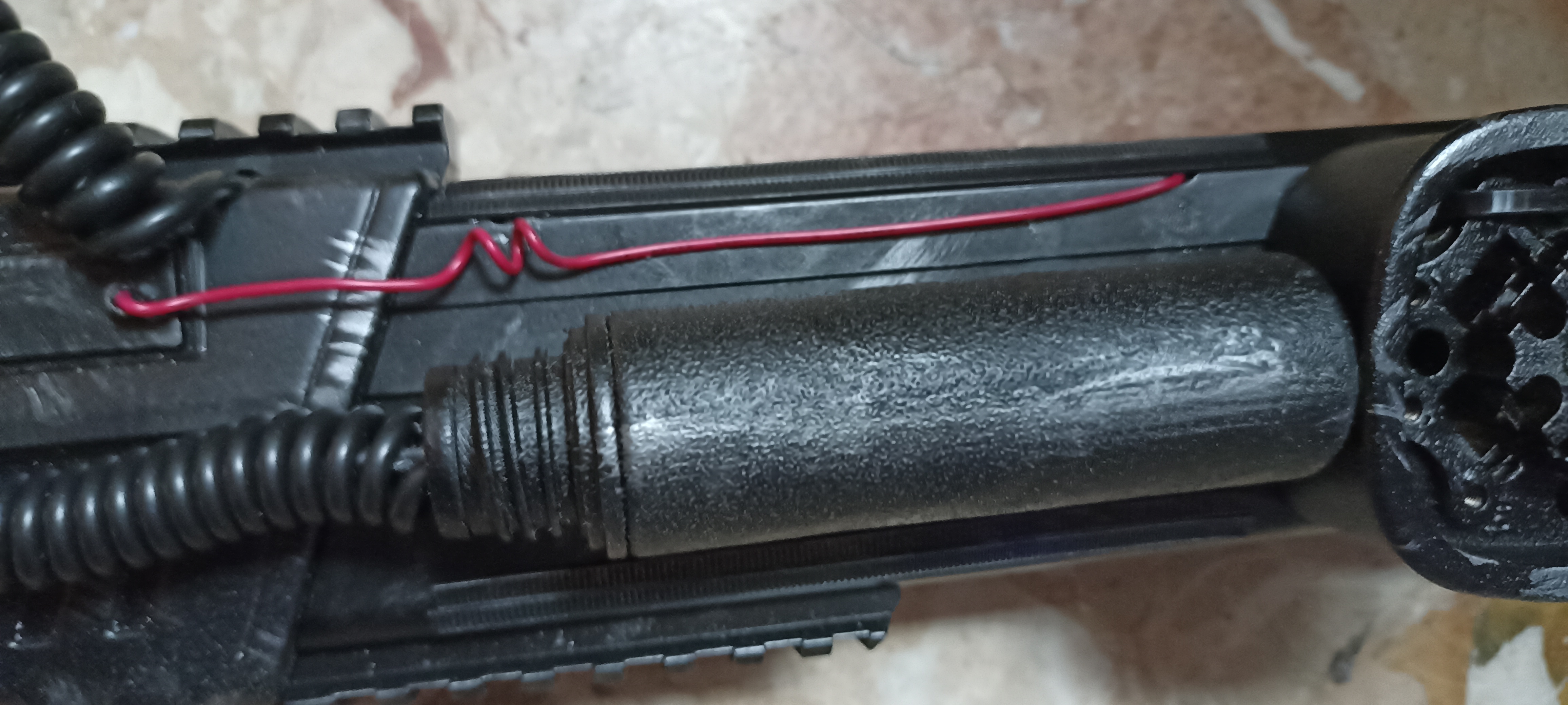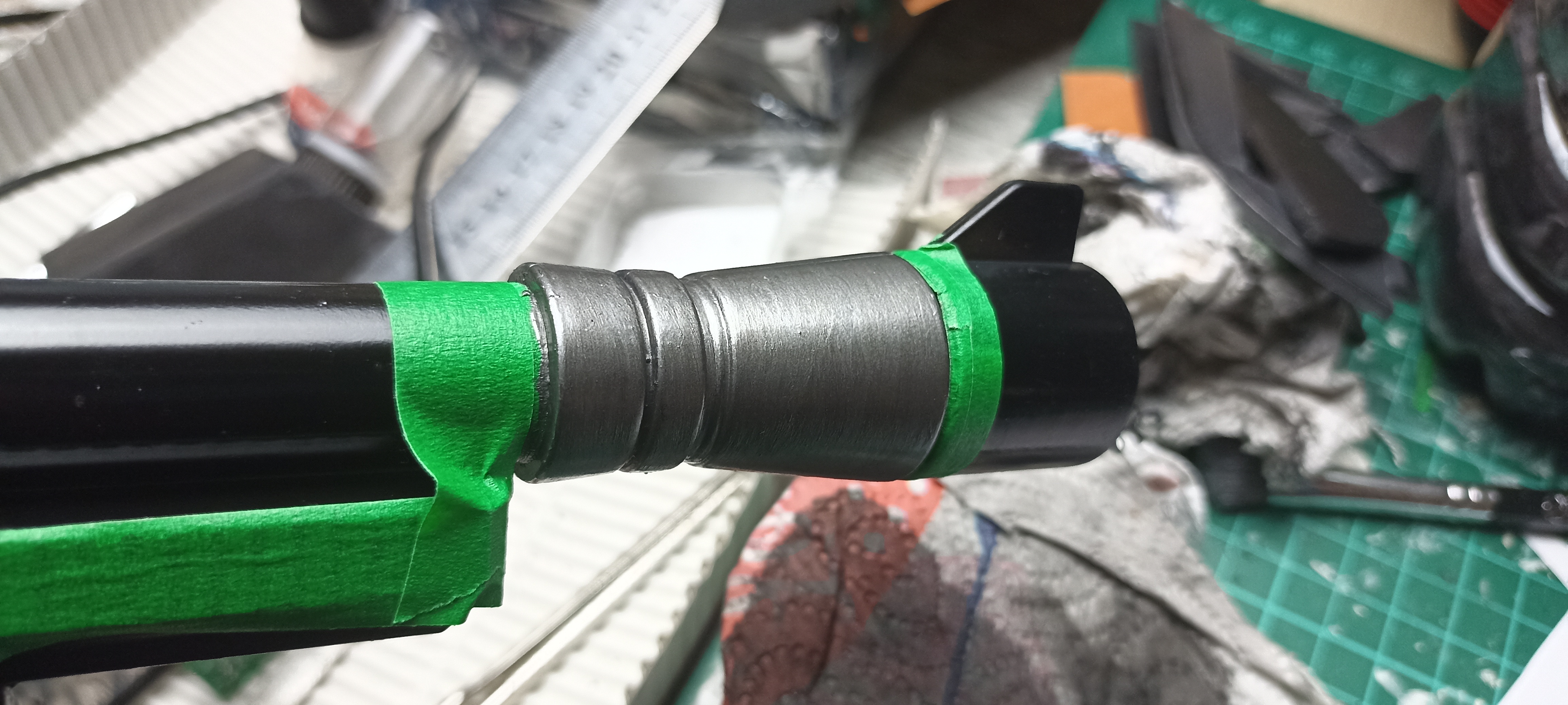 Dettaglio fondo impugnatura weathering con drybrush silver.