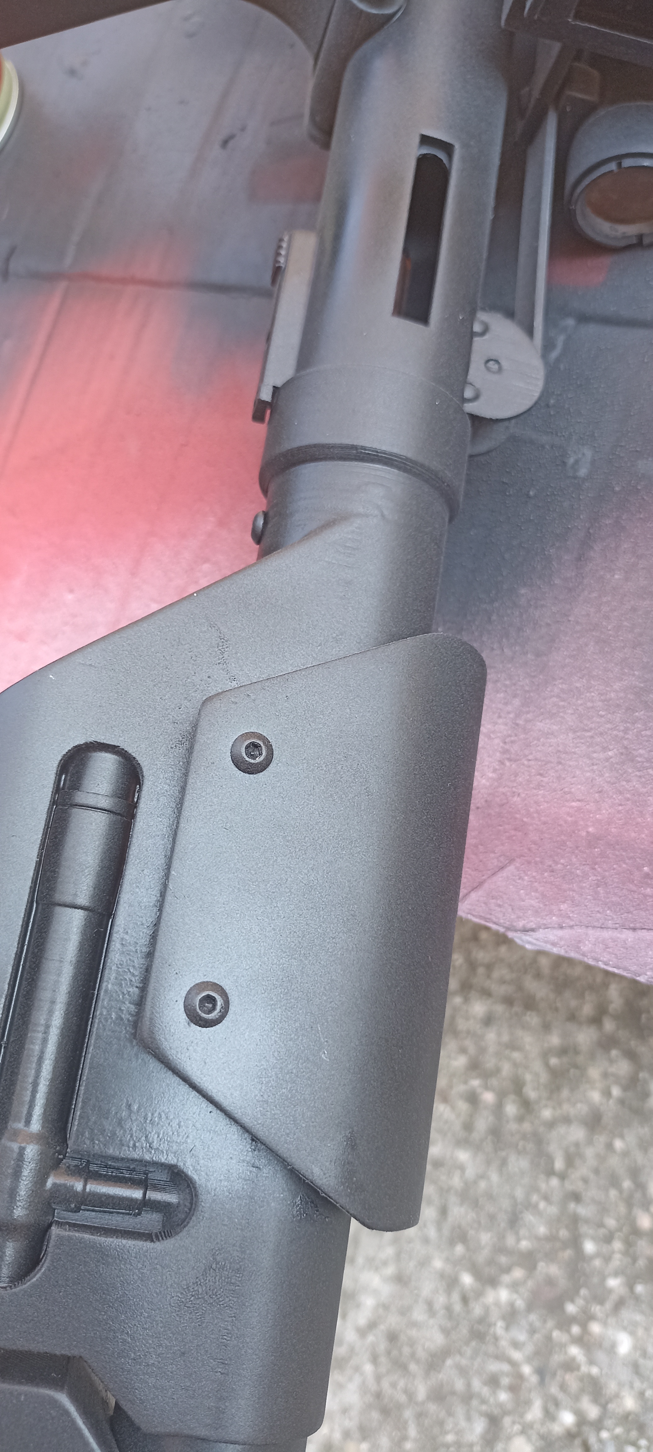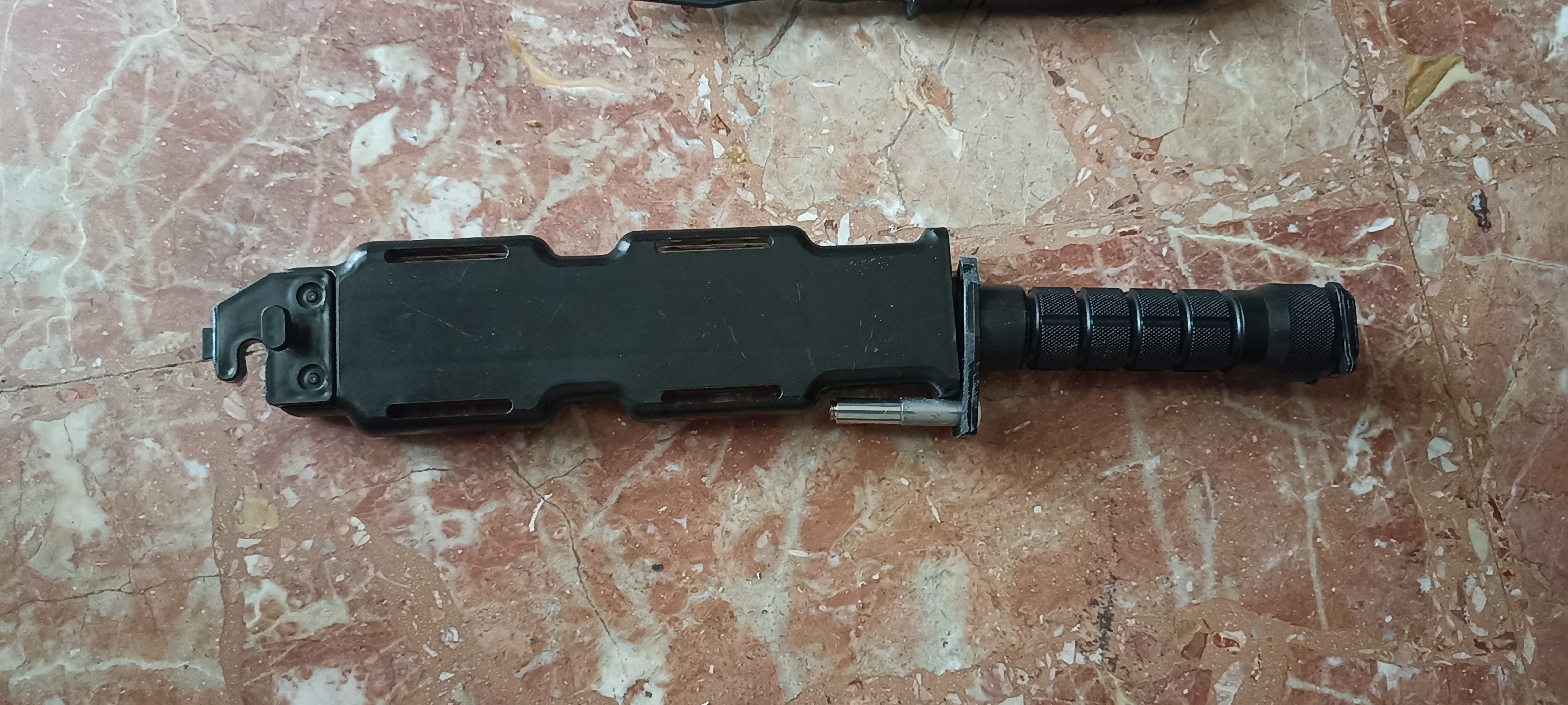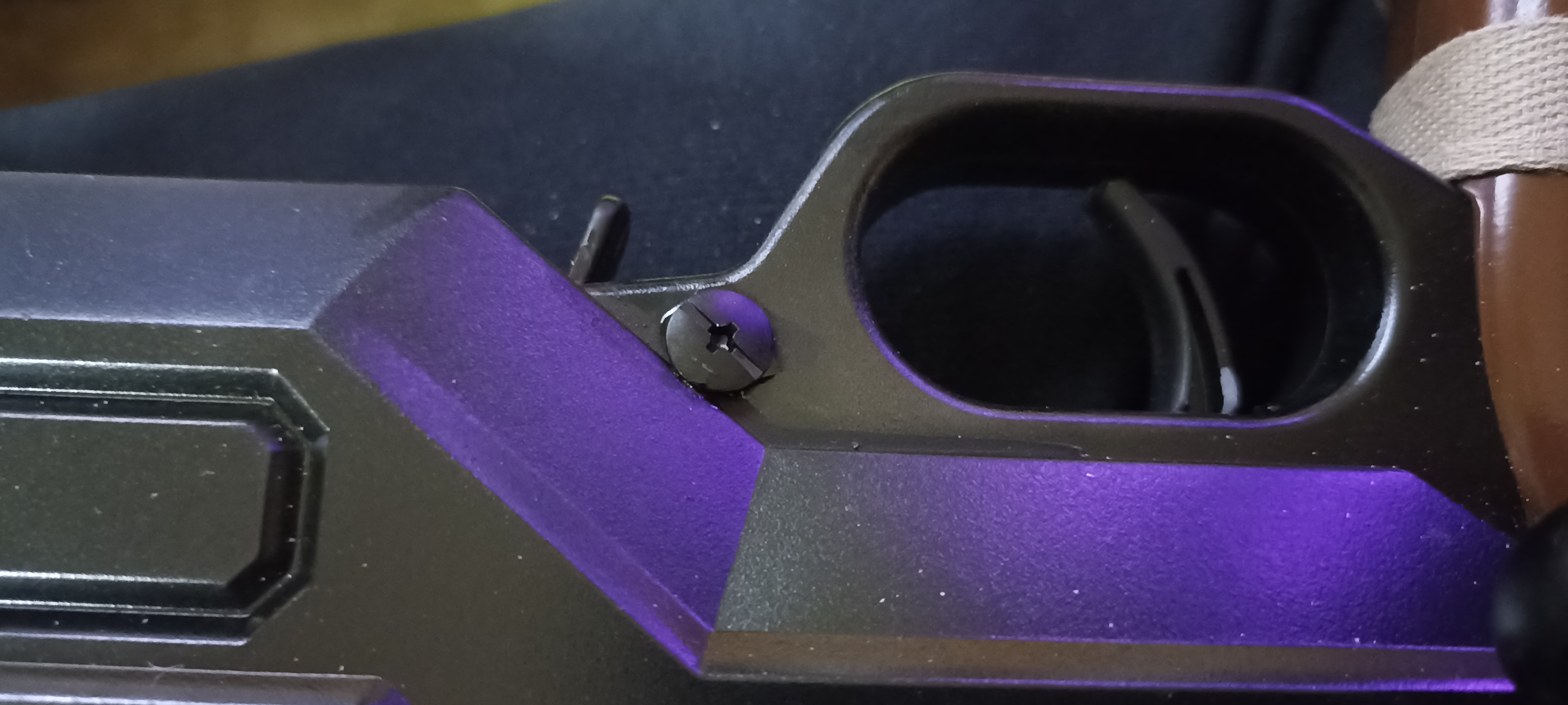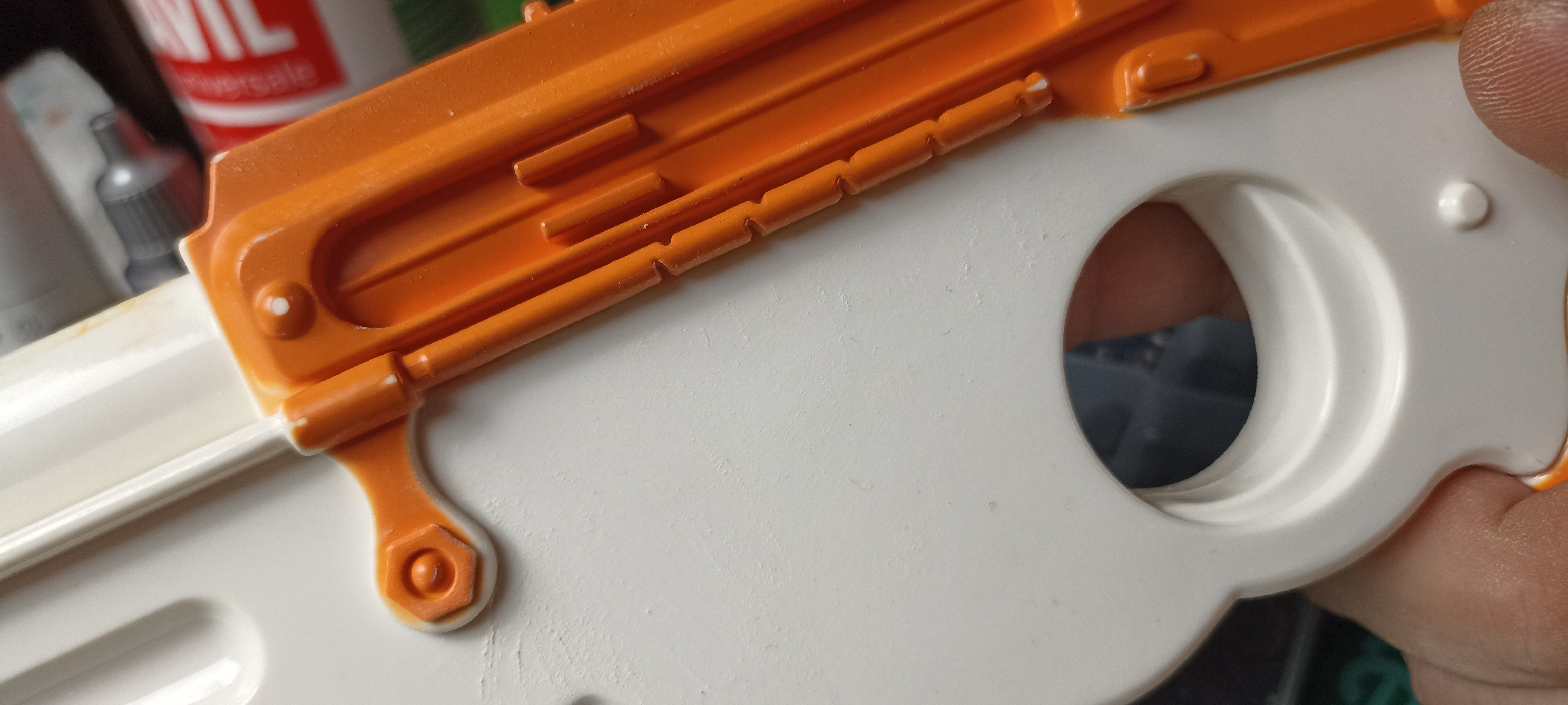 Dettaglio fondo impugnatura weathering con drybrush silver.