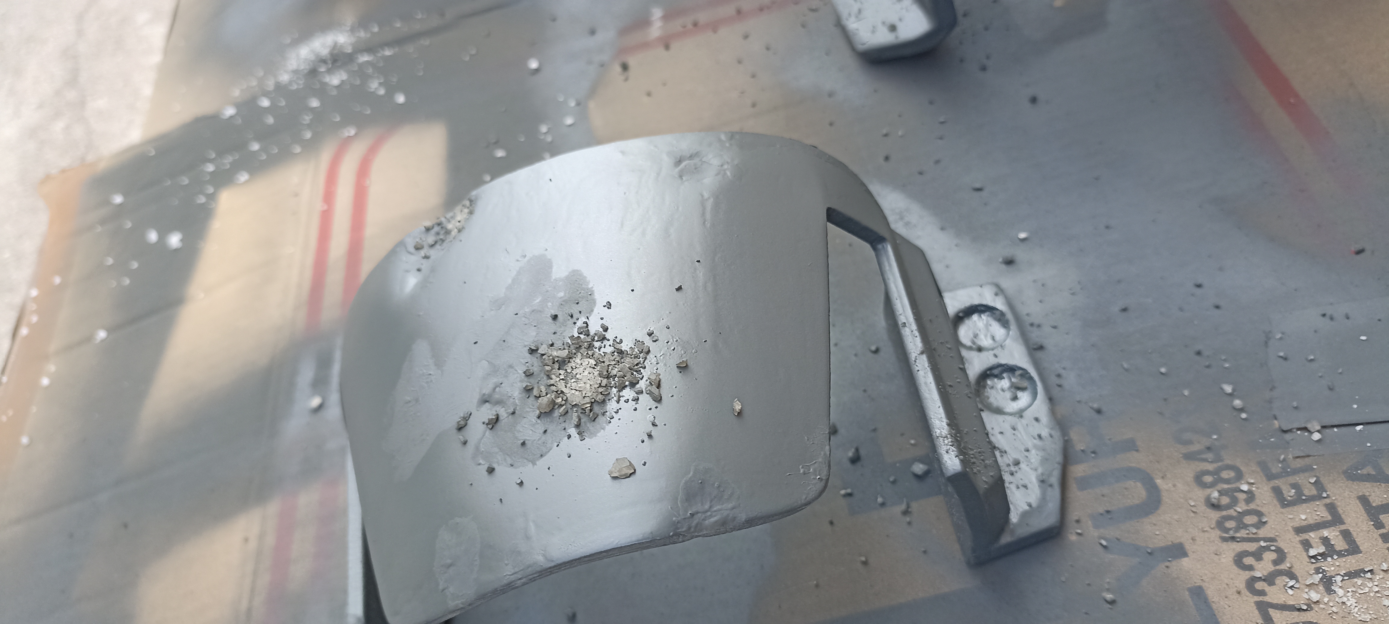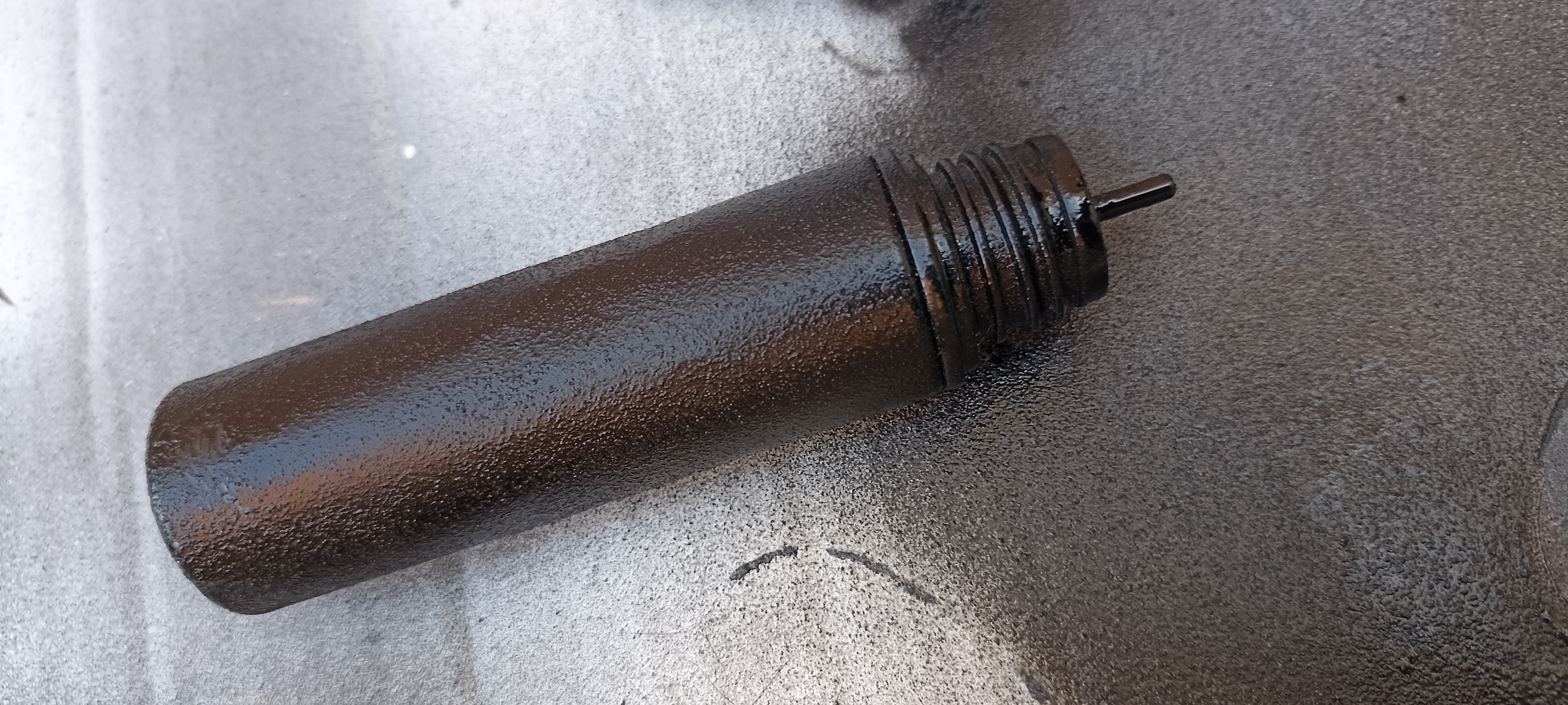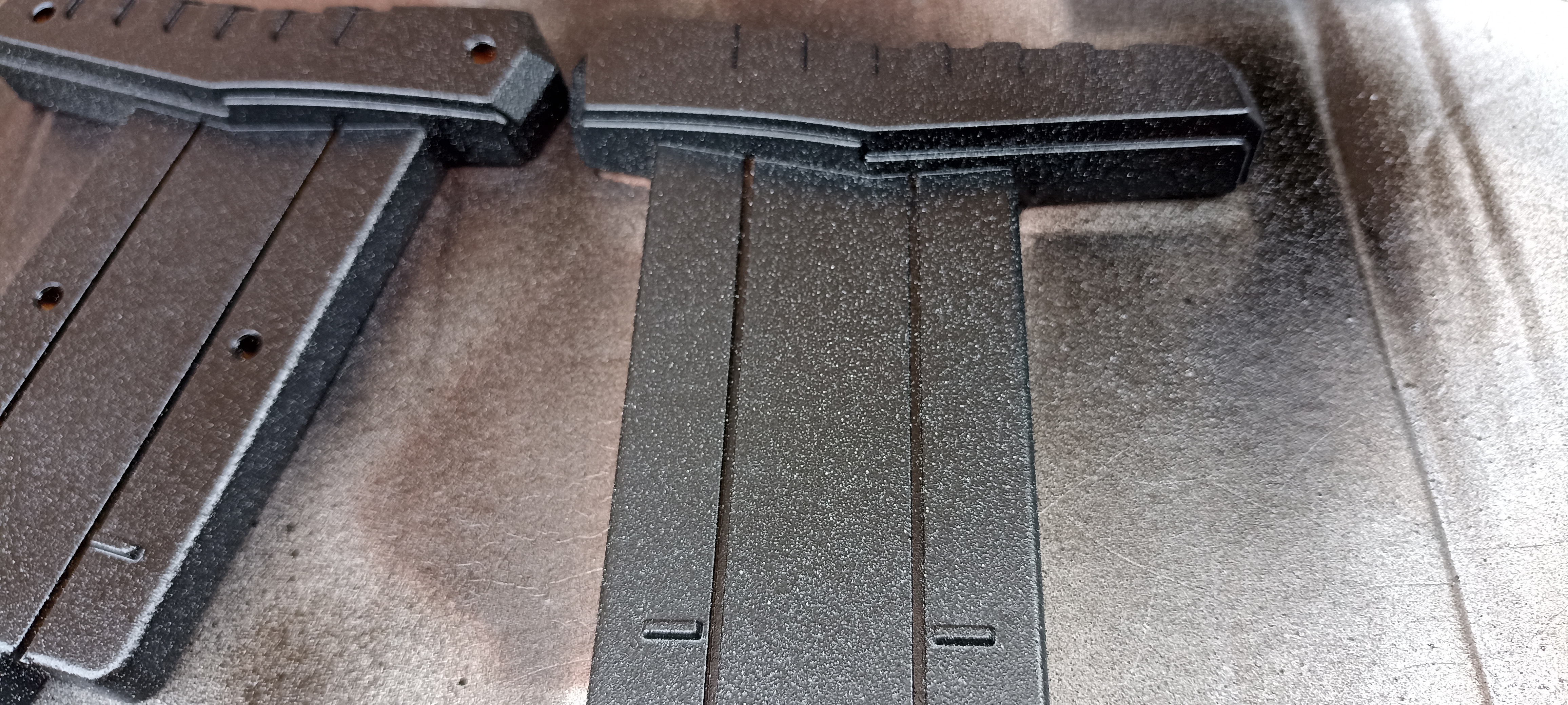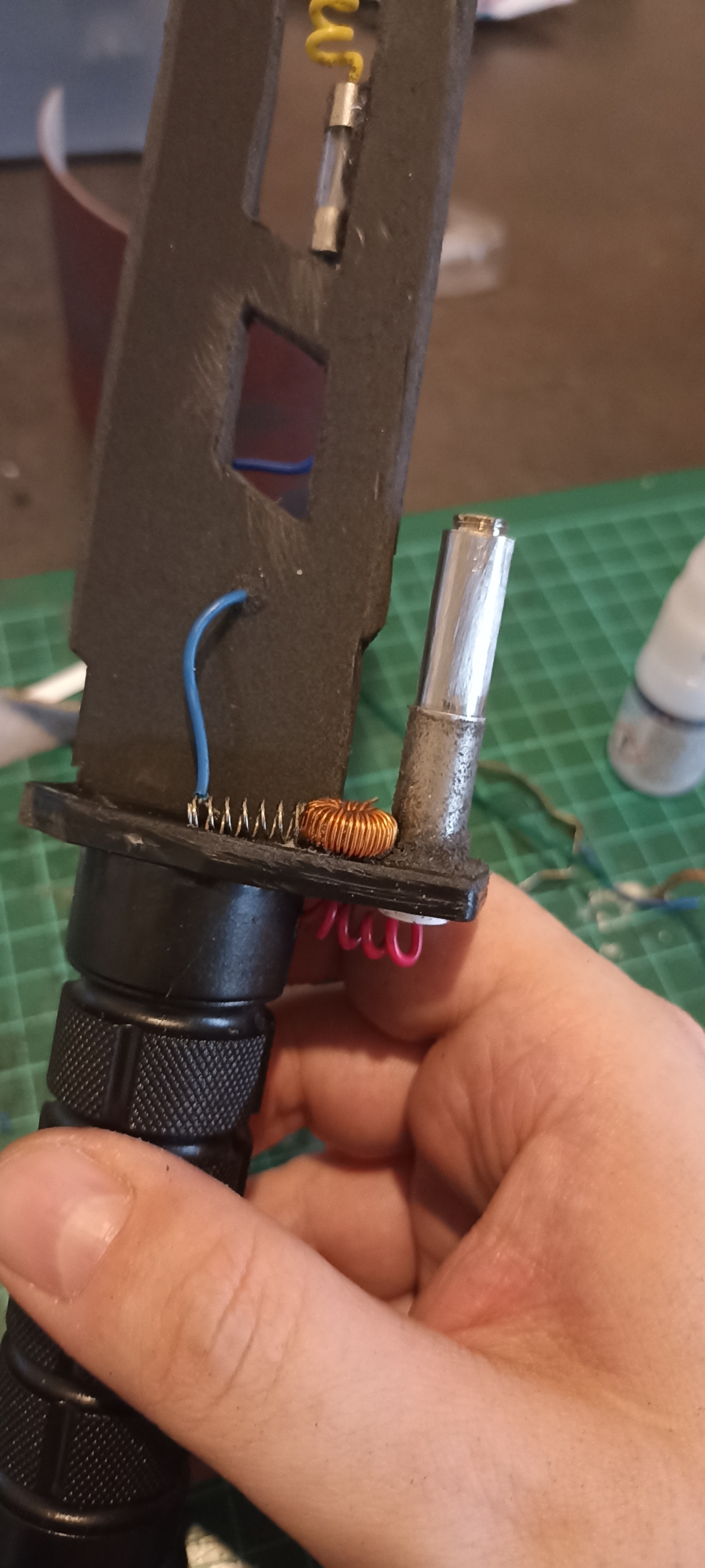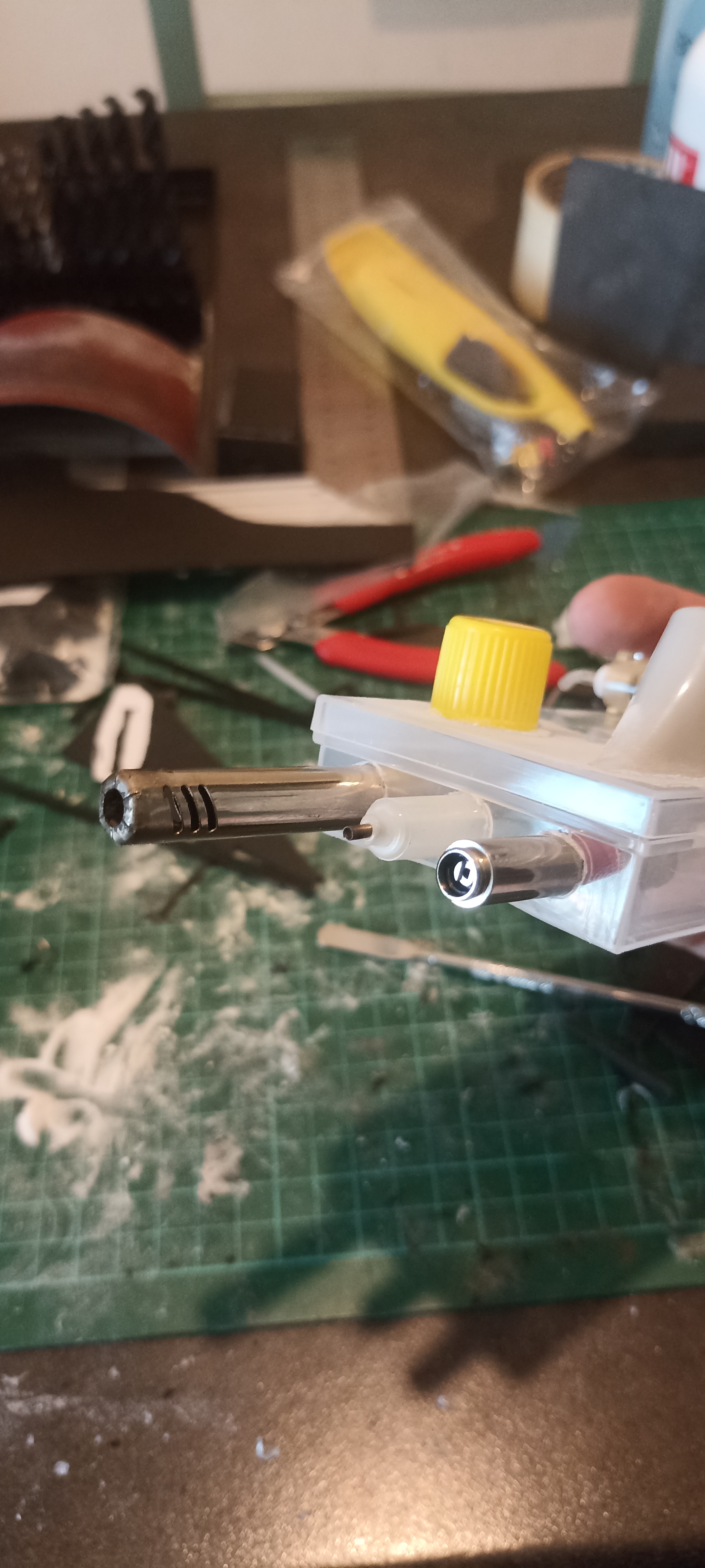 Dettaglio fondo impugnatura weathering con drybrush silver.
