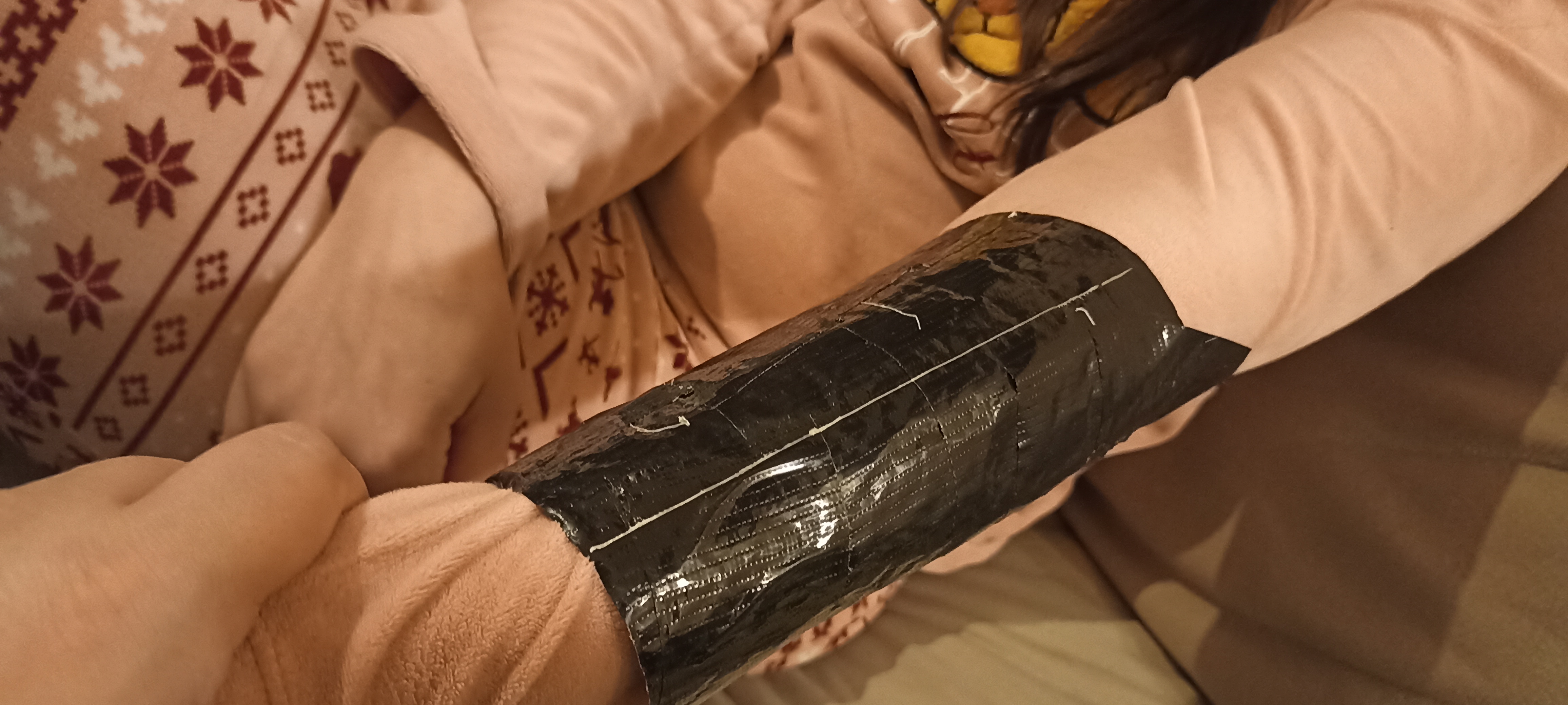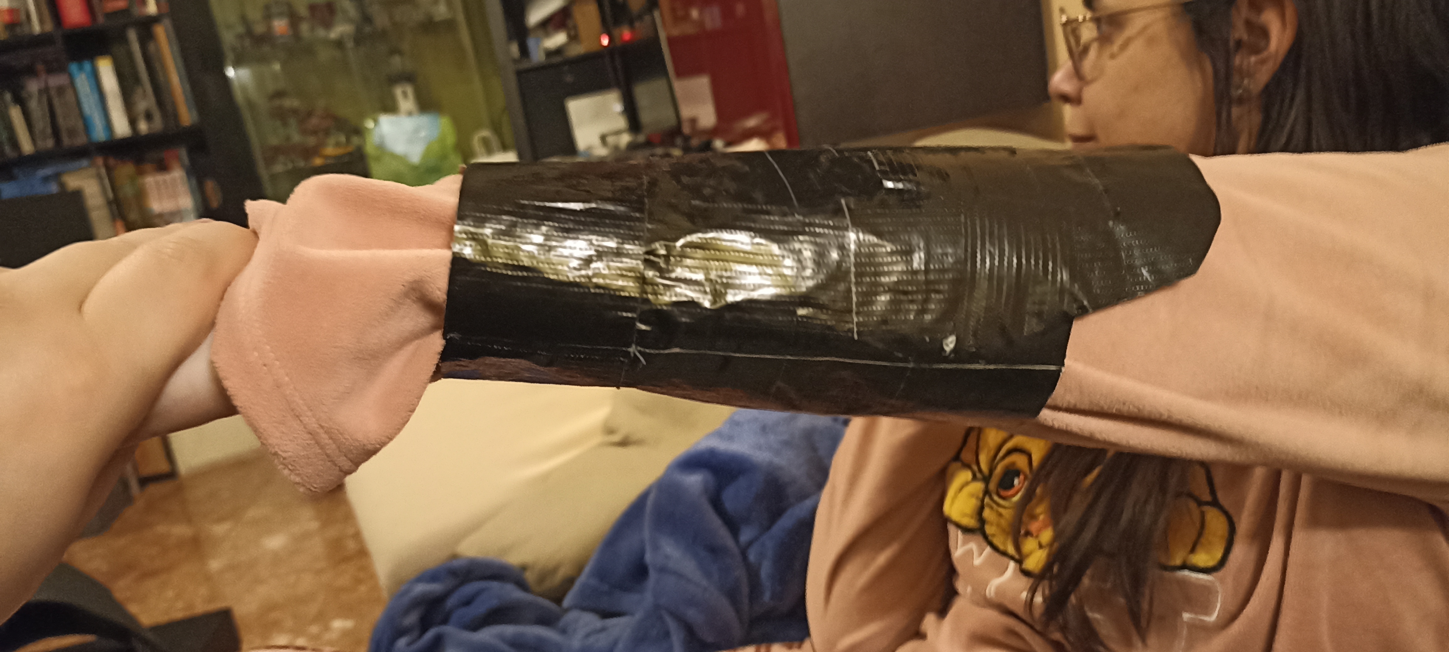 I started by wrapping the forearm with cling film and covering it with tape. After refining the shape, I then transferred it to a sheet of polystyrene (such as a Forex brand).