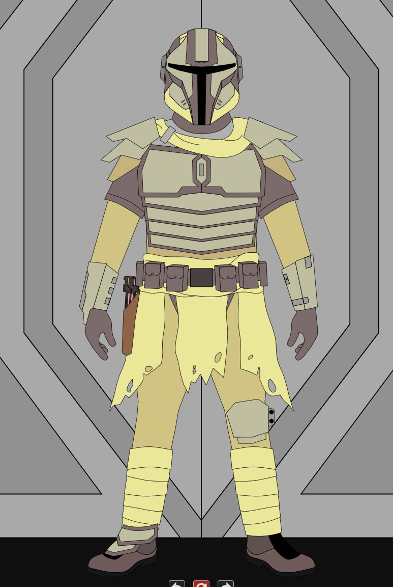 This is the concept desined with the mandocreator tool, the initial idea was to use a Ursa Wren bucket, but when Nadia saw the Harbro' Sabine helmet fall in love (i was happy because it require less work to do, and it has a better fit.