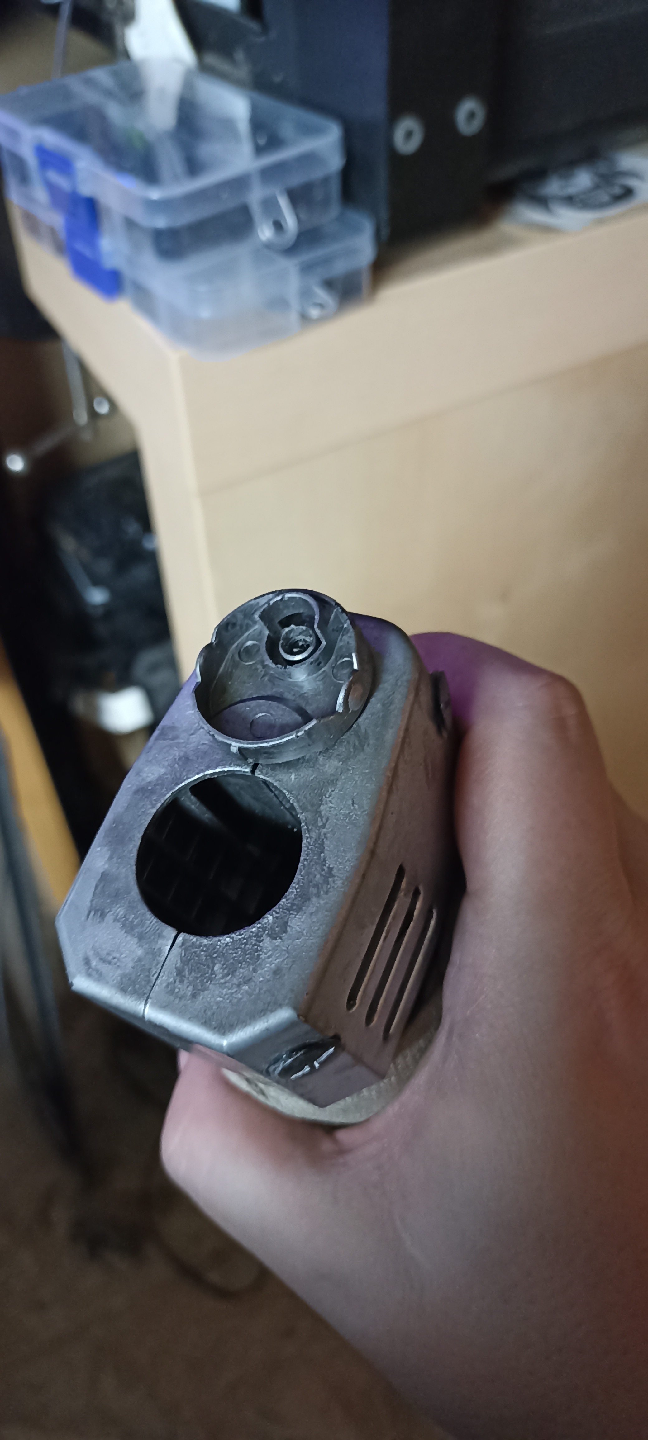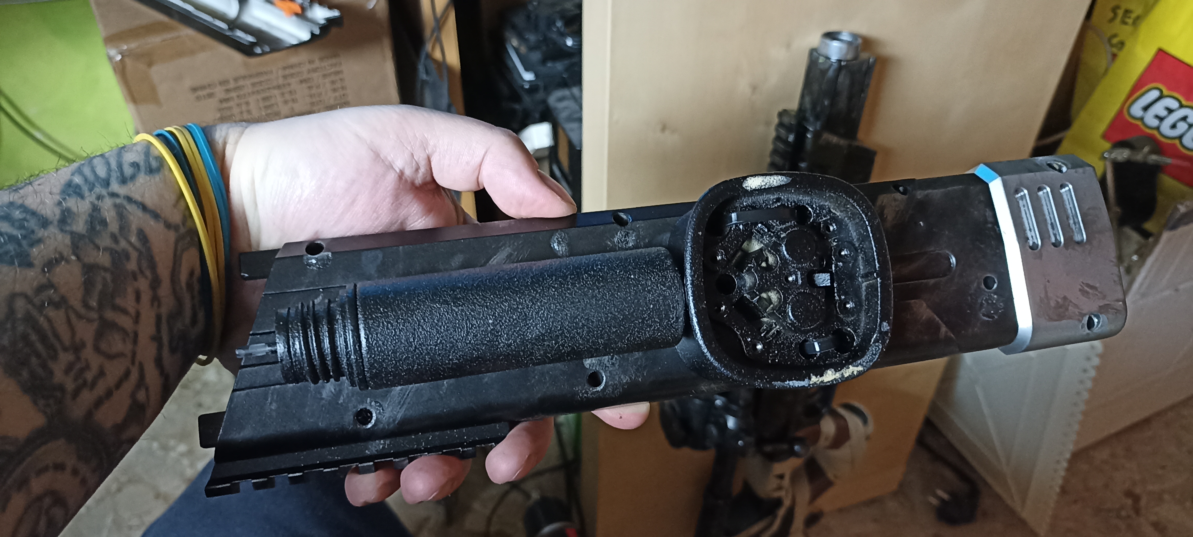 The shoulder is the head of a KX droid. The entire left arm is chrome (excluding weathering).